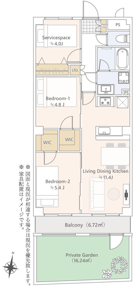 サービスバルコニー面積:2.00㎡