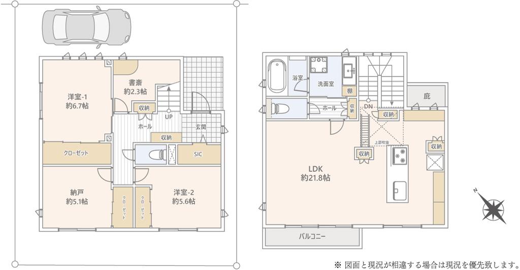| 間取り | 2SLDK 小屋裏収納:約3.48畳 |