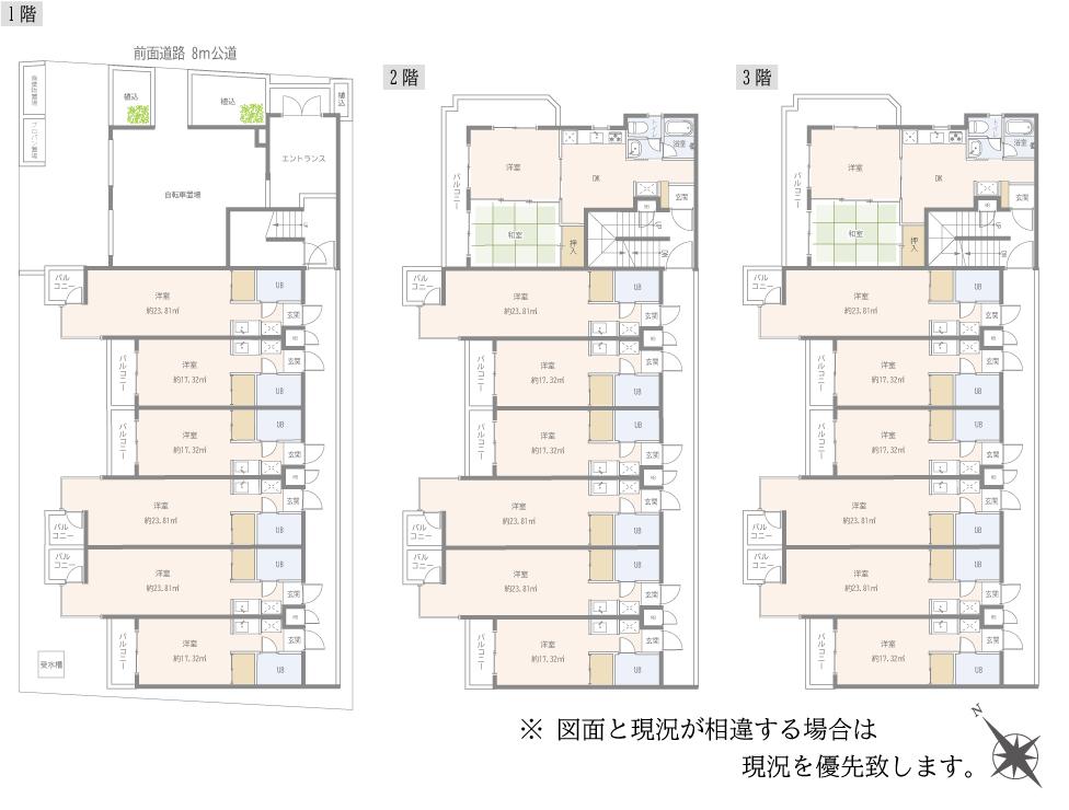 | 総戸数/部屋番号/所在階/階建 | 地上3階 |